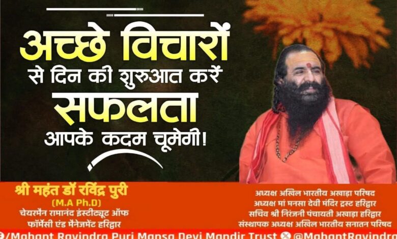 सकारात्मक विचार हमारे जीवन पर गहरा असर डालते हैं – श्री महंत रवींद्र पुरी